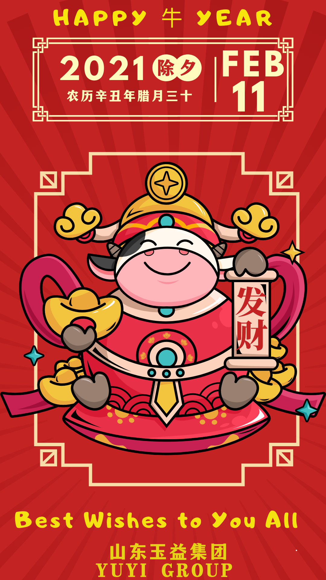 值此新春佳節將臨之際,玉益集團祝愿大家及家人們牛年大吉,闔家歡樂,平安健康,萬事如意!
